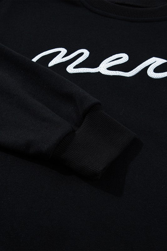Embrace the festive spirit with the sparkling sequin detailing on both the pullover and shorts, creating a chic and eye-catching ensemble.