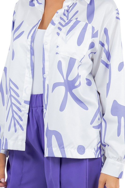 Sexy 2pcs set, round neckline, long sleeves, front button, elasticized waist pants