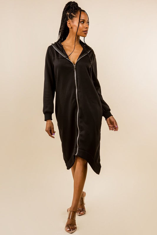 Details-Hoodie jacket front zipper, attached hat, long sleeves side pocket