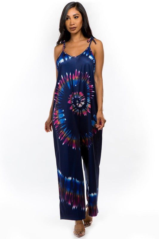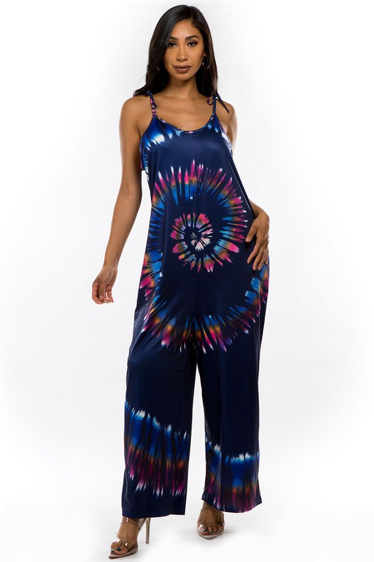 Sexy jumpsuit, sleeveless thin strap, round neckline,wide-leg look