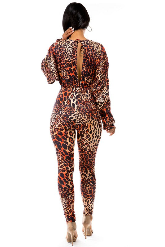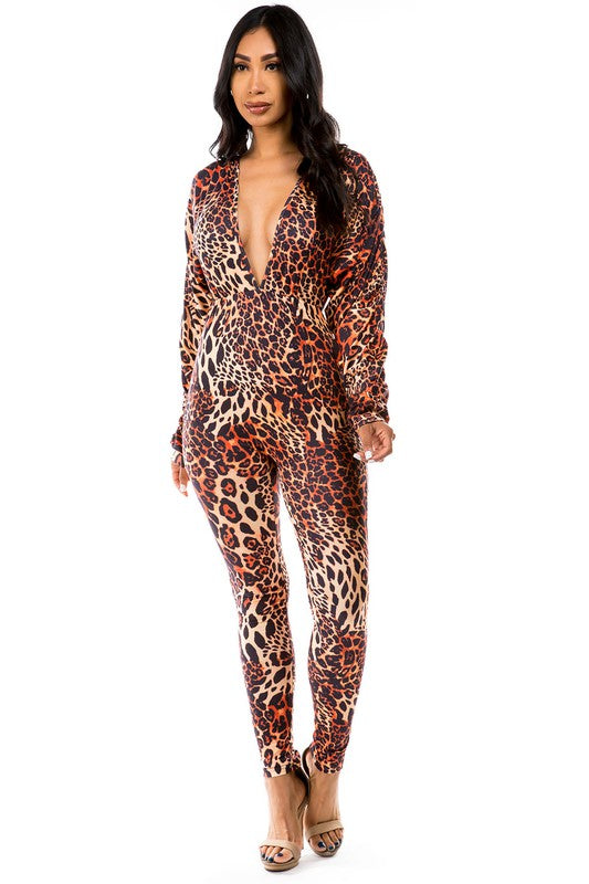 Sexy jumpsuit, deep V neckline, long sleeves, long pant