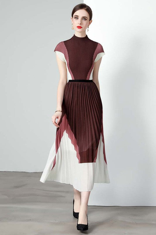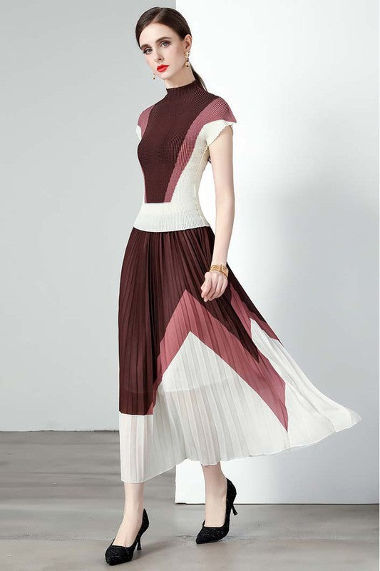 Details-multi print, round neckline, short sleeves, elasticized waist, top and skirt