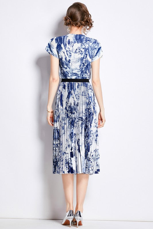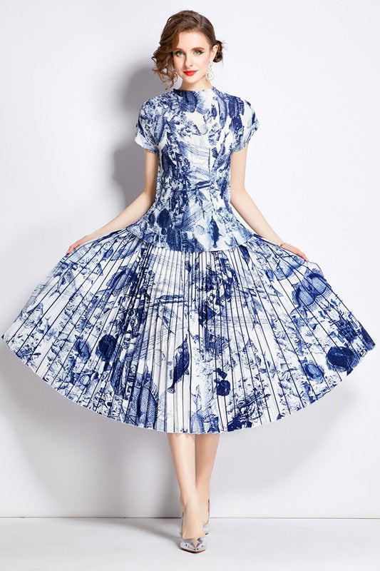 Details-multi print, round neckline, long sleeves, elasticized waist, top and skirt