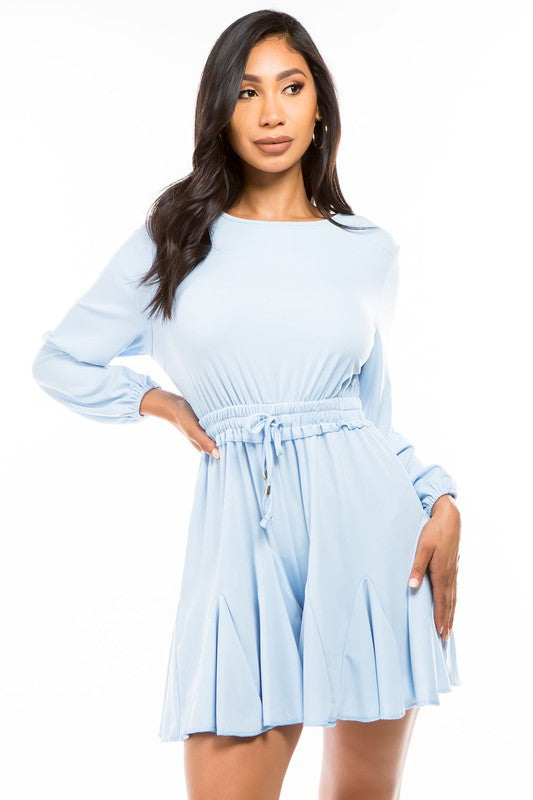 Sexy romper, round neckline, long sleeves, back zipper ,elasticized waist.