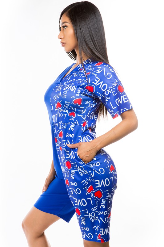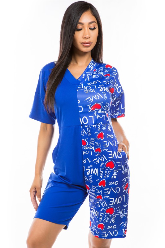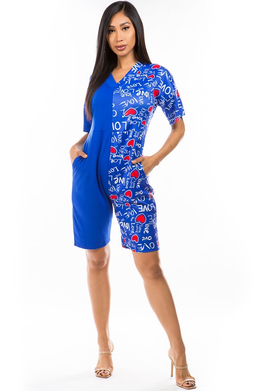 Sexy casual romper, short sleeves color block multi print, v neckline, side pocket