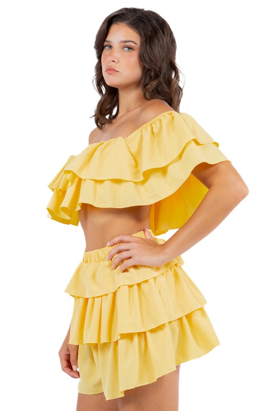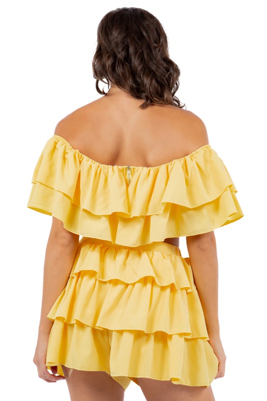 sexy tops off shoulder multi layered back zipper , elasticized waist hem style short