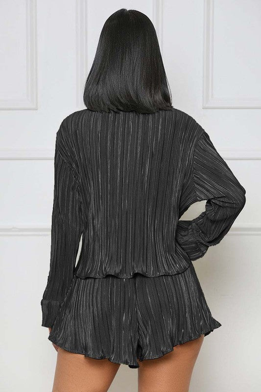 Details- deep-v neckline long sleeves shirt style with front strip, elasticized waist.