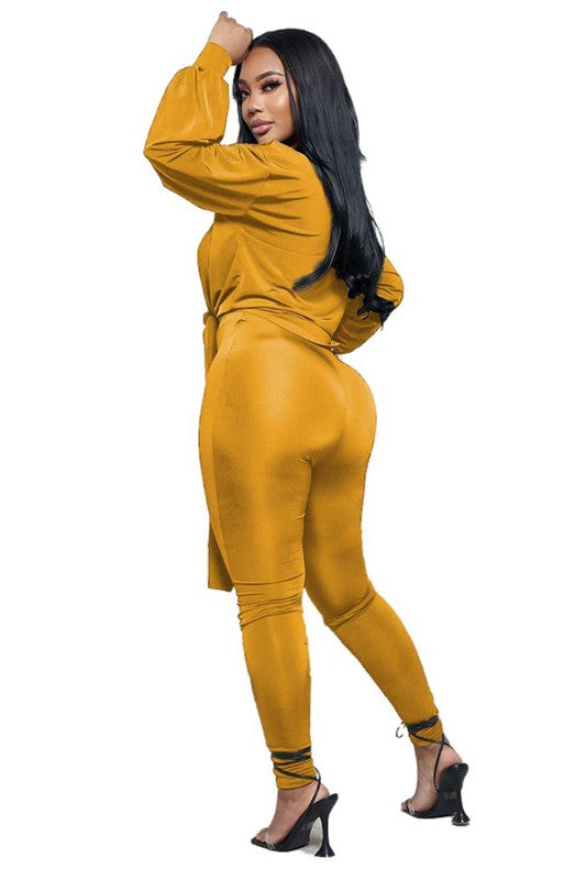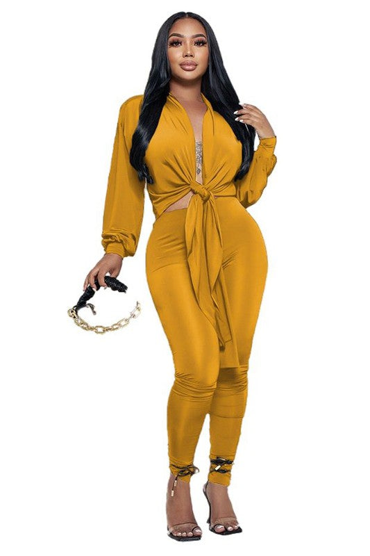 Sexy 2pcs set, long sleeves, front wrap style self-design, v neckline, elasticized waist pant