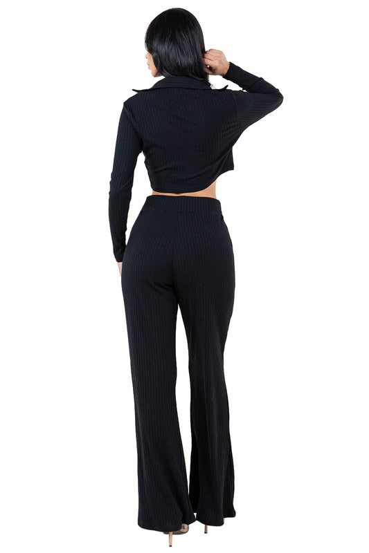Sexy 2pcs set ,scoop neckline, long sleeves , elasticized waist bell bottoms pants