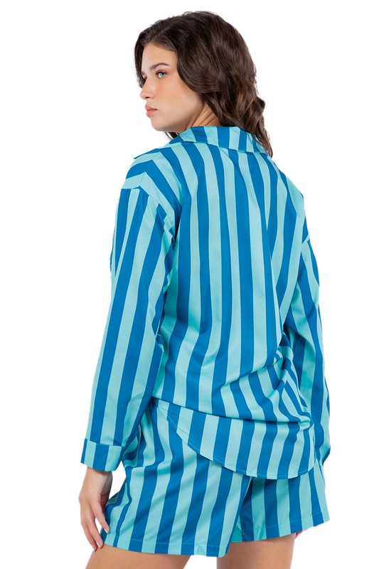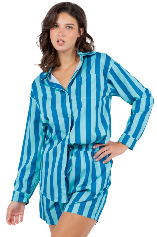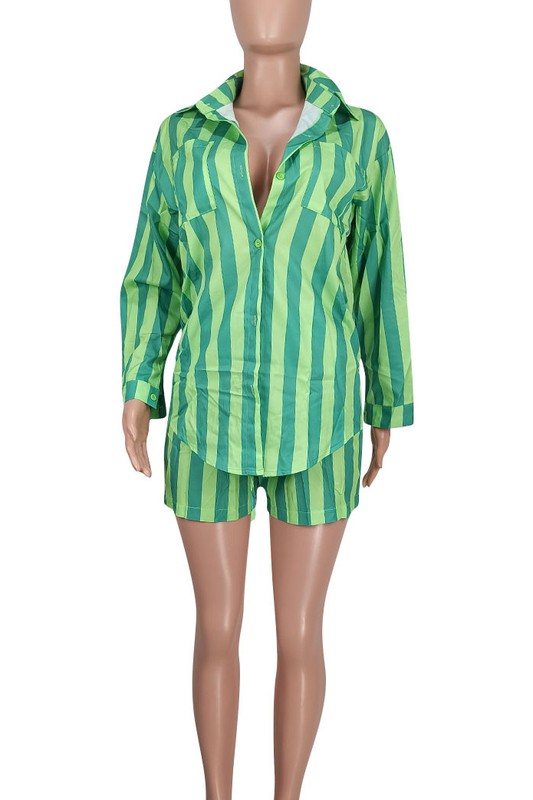 Sexy 2pcs set, adjustable sleeves and flap pocket, front button-up , elasticized waist short