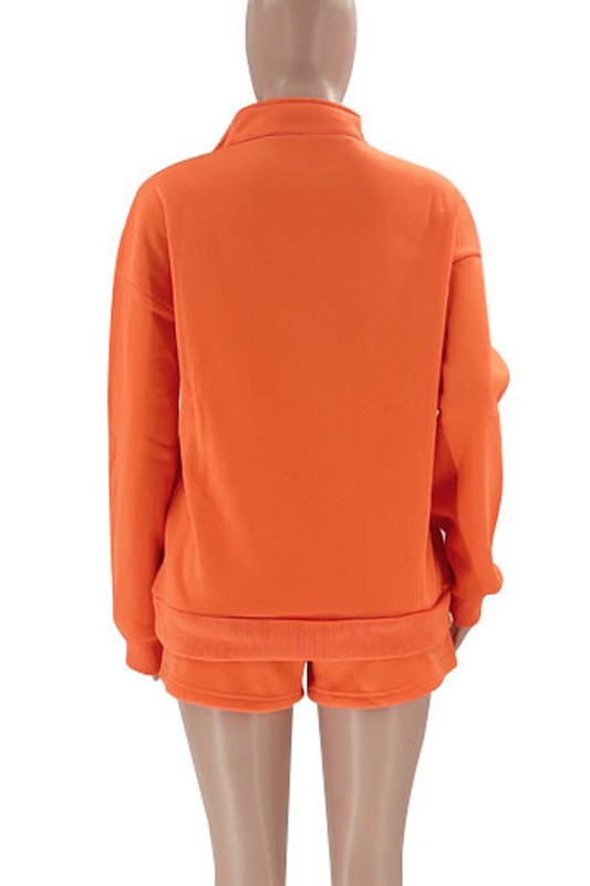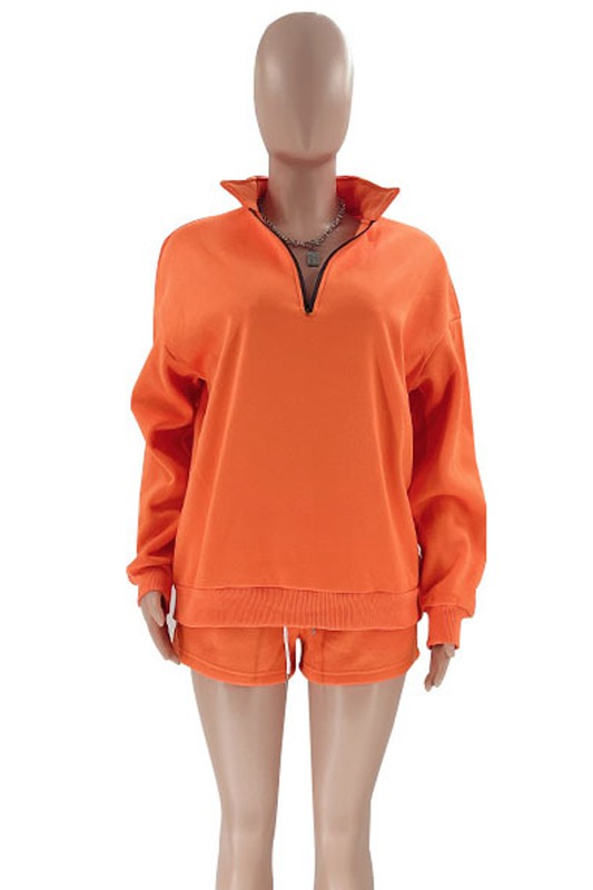 Sexy 2pcs set, round neckline front zipper up, long sleeves, elasticized waist short side pocket