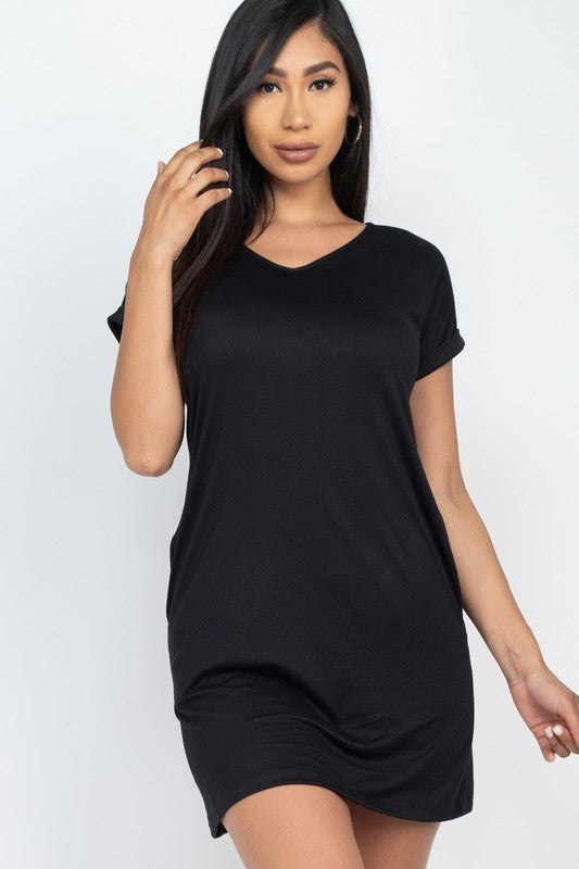 Short Cap Sleeve Pocket Mini T Shirt Dress