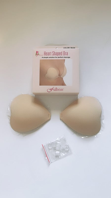 Fullness 3028Plus Beige Heart Shaped Bra. A simple solution for perfect cleavage. Provides total coverage while smoothing, lifting and supporting breast without wearing a padded bra. One size. Prefect to wear with low plunge top or backless dress.