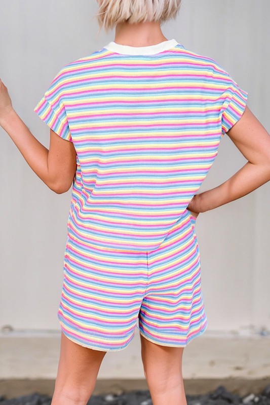 Stripe Crew Neck Tee and Drawstring Shorts Set