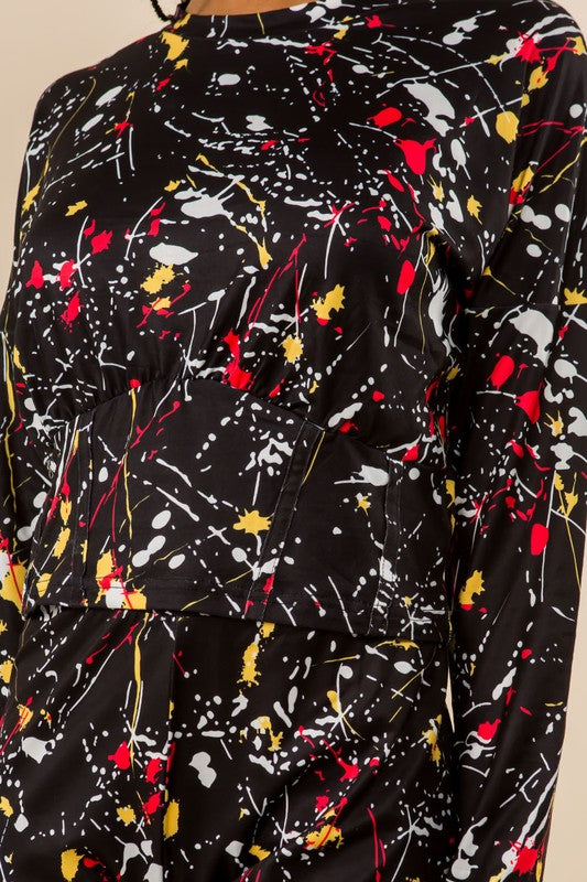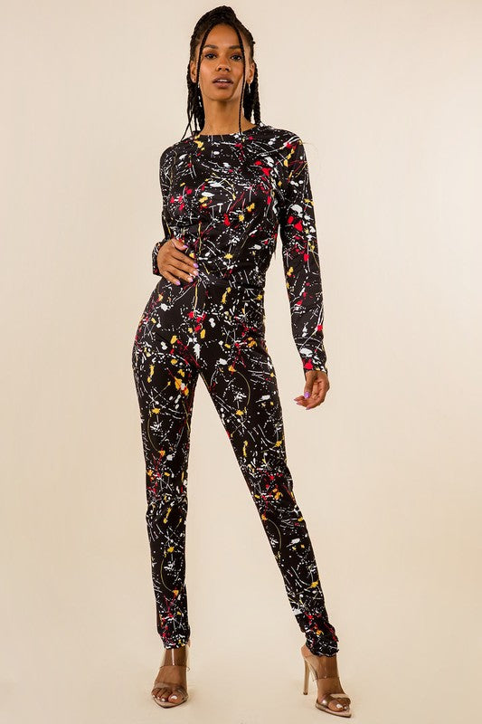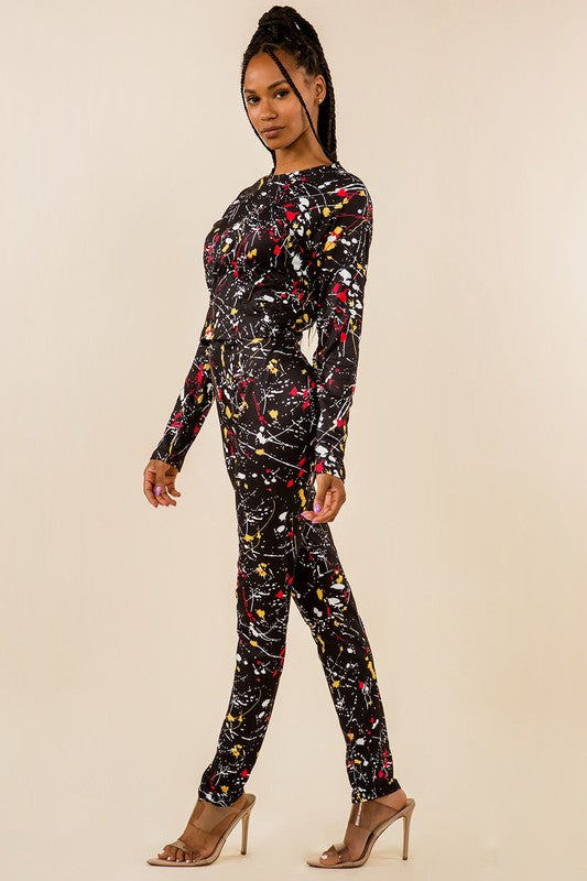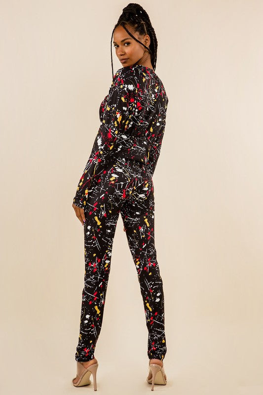 Sexy casual suits, round neckline look, long sleeves, elasticized waist skinny pant look