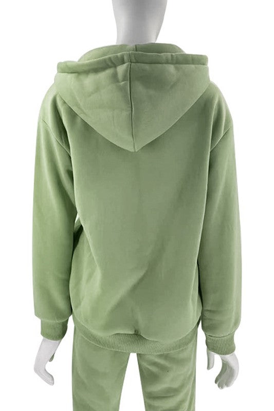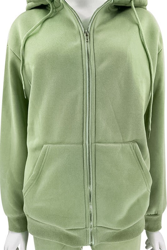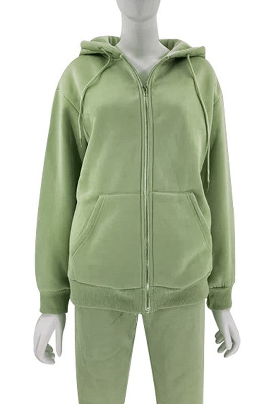 Sexy 2pcs set, Attached hat, long sleeves, front zipper up, side pocket, ribbed trim, elasticized waist pant