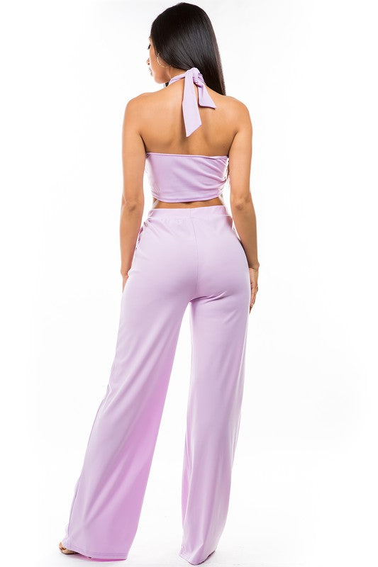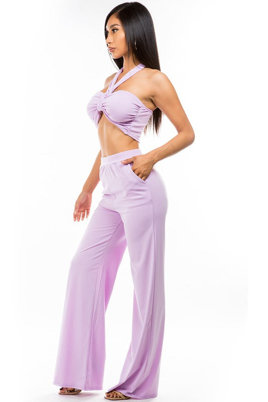 Sexy casual suits, tube top self strip neck look, elasticized waist pant side pocket