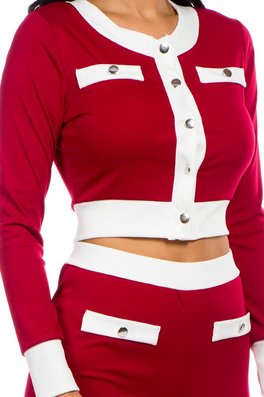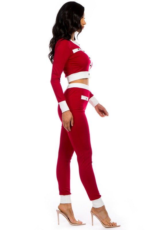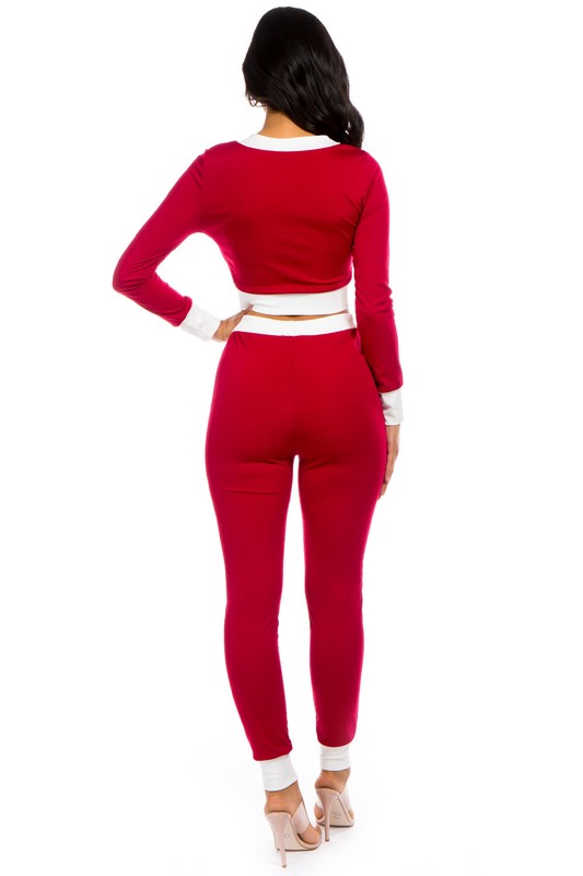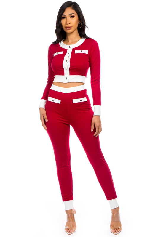 Sexy casual suits, round neckline, long sleeves, elasticized waist skinny pant