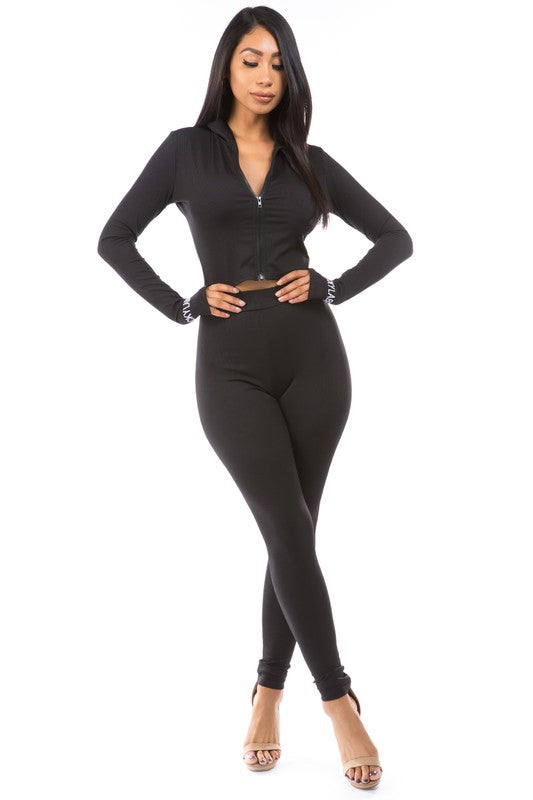 Sexy casual suits ,long sleeves, front zipper ,elasticized waist pant