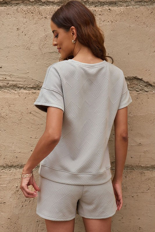Women 2pcs Solid Textured Drawstring Shorts Set