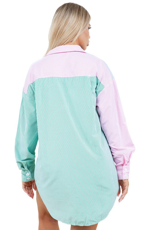 Details-Casual 2pcs set spread collar, Long sleeves with two-button cuffs, Front button closure, Elastic waist side pocket