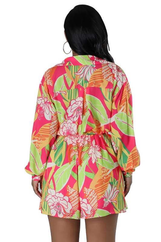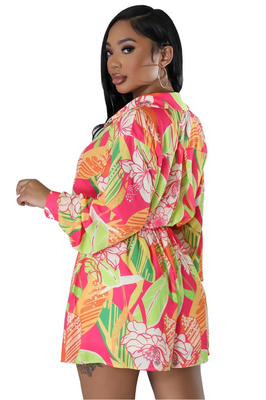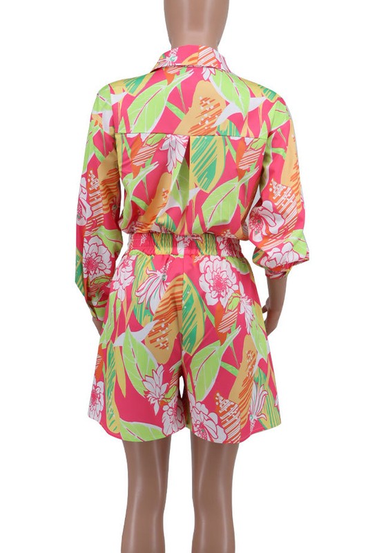 Details-Casual 2pcs set long sleeves, collared neckline, Elastic waist short.