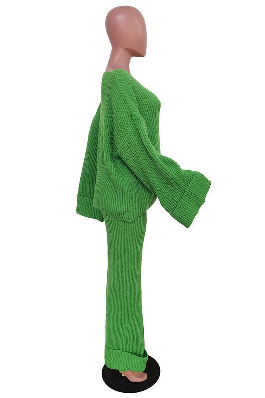 WOMEN FASHION 2PCS SWEATER PANTS SET