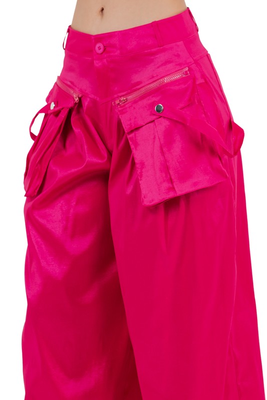 Details- palazzo pants, belt loops, front cargo pocket, wide leg fashion look