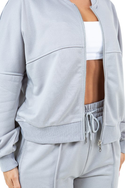 Sexy 2pcs set,front-zip closure, Ribbed cuffs, and hem, elasticized waist pant side pocket
