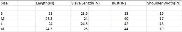 XL: 45.5 (Bust), null (Waist), null (Hips), 2.5 (Length)